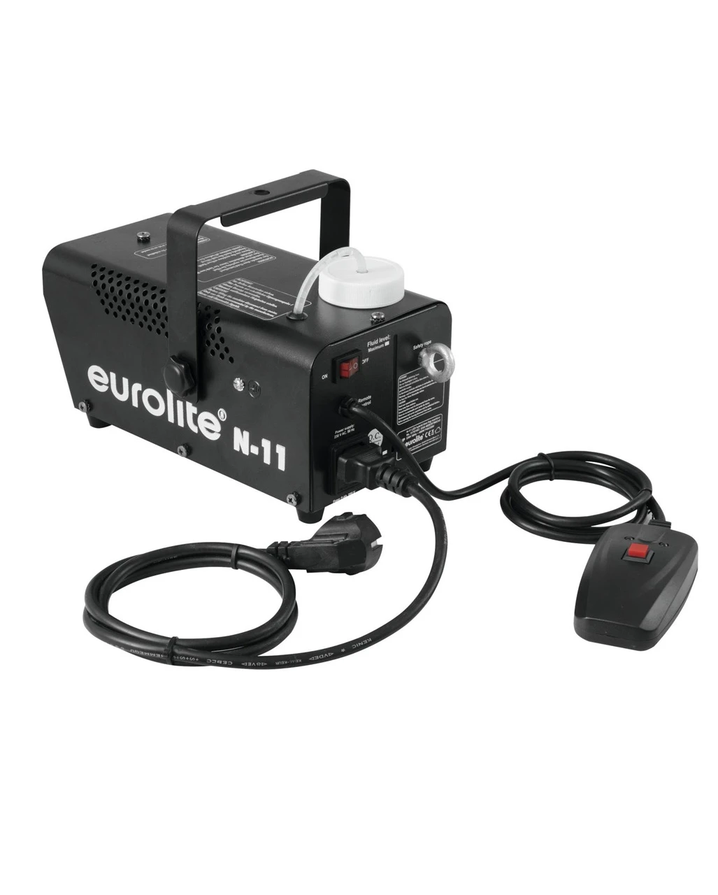 Die EUROLITE N-11 LED Hybrid Blau Nebelmaschine kommt in der Gehäusefarbe Schwarz, sodass diese gut in der Kulisse zu verstecken ist. Die Nebelmaschine wird über die mitgelieferte Fernbedienung mit AN und AUS Schalter manuell gesteuert (kein zeitlicher Intervallschalter). Bei jedem Austoß von Nebel leuchten die blauen Leds auf und beleuchten dabei die Nebelschwaden mit blauem Licht. Die Nebelmaschine verfügt über einen Hängebügel, sodass man die Fog Maschine auch aufhängen kann. Ein Überhitzungsschutz sorgt für extra Sicherheit, während die Füllstandsanzeige dafür sorgt, dass du immer weißt, wann diese mit Nebelflüssigkeit nachzufüllen ist. Passend dazu unser Nebelflüssigkeit Eurolite Nebelflüssigkeit 1l.