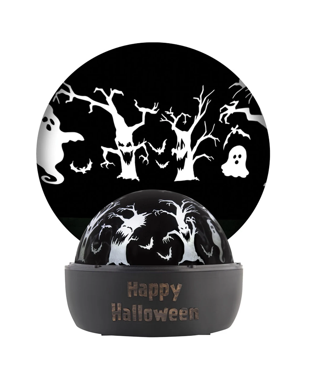 Der Geister Schattenspiel Projektor ist eine tolle stimmungsvolle Lichtdeko für eure nächste Halloween- oder Walpurgisnacht-Party. Tauche den Raum mit diesem atmosphärischen Grusel-Lichtspiel in Halloween Geister die einen Geisterbaum umkreisen. Das Schattenspiel taugt für jede erwachsene Horror-Party – und ist auch kinderfreundlich als Halloween-Deko einsetzbar.