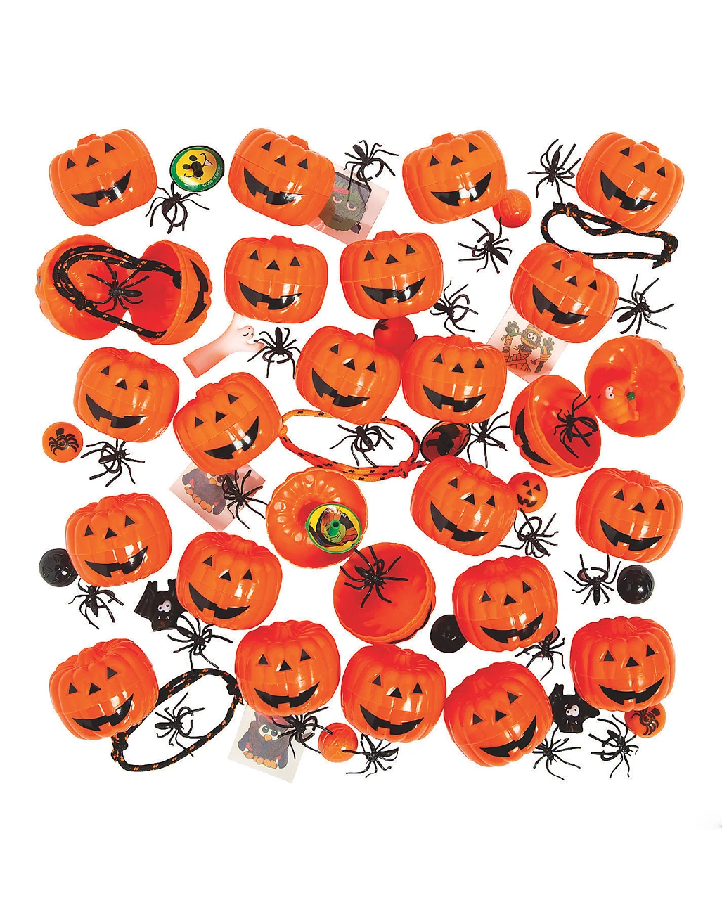 Der orange Kürbis mit kleiner Überraschung besteht aus Kunststoff und hat einen Durchmesser von ca. 5 cm. Der süße Kürbis lässt sich kinderleicht öffnen und ist mit 2 Überraschungen wie etwa einem Spinnenring oder einem Kürbis Fingerhut gefüllt. Lass dich überraschen! Der Kürbis kann auch noch mit einer Kleinigkeit wie einem Grusel-Marshmallow Augapfel selbst befüllt werden.
