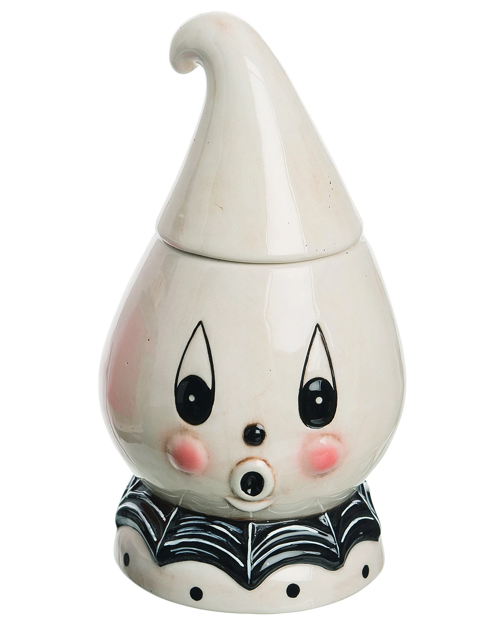 Beim Johanna Parker Vintage Süßigkeitenbehälter Geist handelt es sich um echtes Kunsthandwerk. Die Halloween Skulptur ist sorgfältig von Hand gefertigt und ein Muss für Sammler, Vintage Fans und Kunstliebhaber. Da jede Figur in Handarbeit gefertigt wurde, gleicht kein Stück dem anderen. Du erhältst also ein echtes Unikat! Unser Gespenst Behälter mit Deckel zeigt einen niedlichen Geisterkopg mit Zipfelhaube und Halskrempe. In der Aufbewahrungsdose lassen sich Bonbons für den Trick or Treat dekorativ aufbewahren. Die Johanna Parker Skulptur besteht aus Keramik, ist handbemalt und eine großartige Geschenkidee für Halloween!
