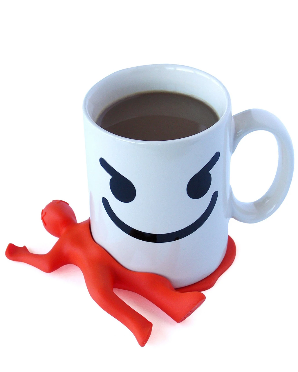 Mit unserem Männchen in Blutlacke Untersetzer gehören Getränkeränder der Vergangenheit an. Noch bevor sich die unschönen Ränder auf dem Tisch abzeichnen, eilt unser Silikon Männchen Untersetzer zu Hilfe. Und dafür lässt das Kerlchen sogar sein Leben! Der rote Silikon Tassenuntersetzer kommt in Form einer Blutlache, an der ein toter Körper liegt. Dieser rote Untersetzer ist das ideale Geschenk für Splatter- & Halloween Fans. Unser lustiger Geschenkartikel hält deinen Tisch sauber, indem er störende Getränkeränder verhindert.