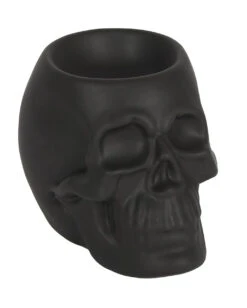 Dekoriere dein Gothic-Reich mit okkulten Elementen und mystischen Figuren. Unser schwarzer Totenschädel Duftöl Teelichthalter ist eine düstere Totenkopf Schale, die als Halter für ätherische Öle und Duftwachs dient. Die Rückseite verfügt über eine Auslassung, in die du ein Teelicht hineinstellen kannst – ideal für Gothics und Wicca-Fans!