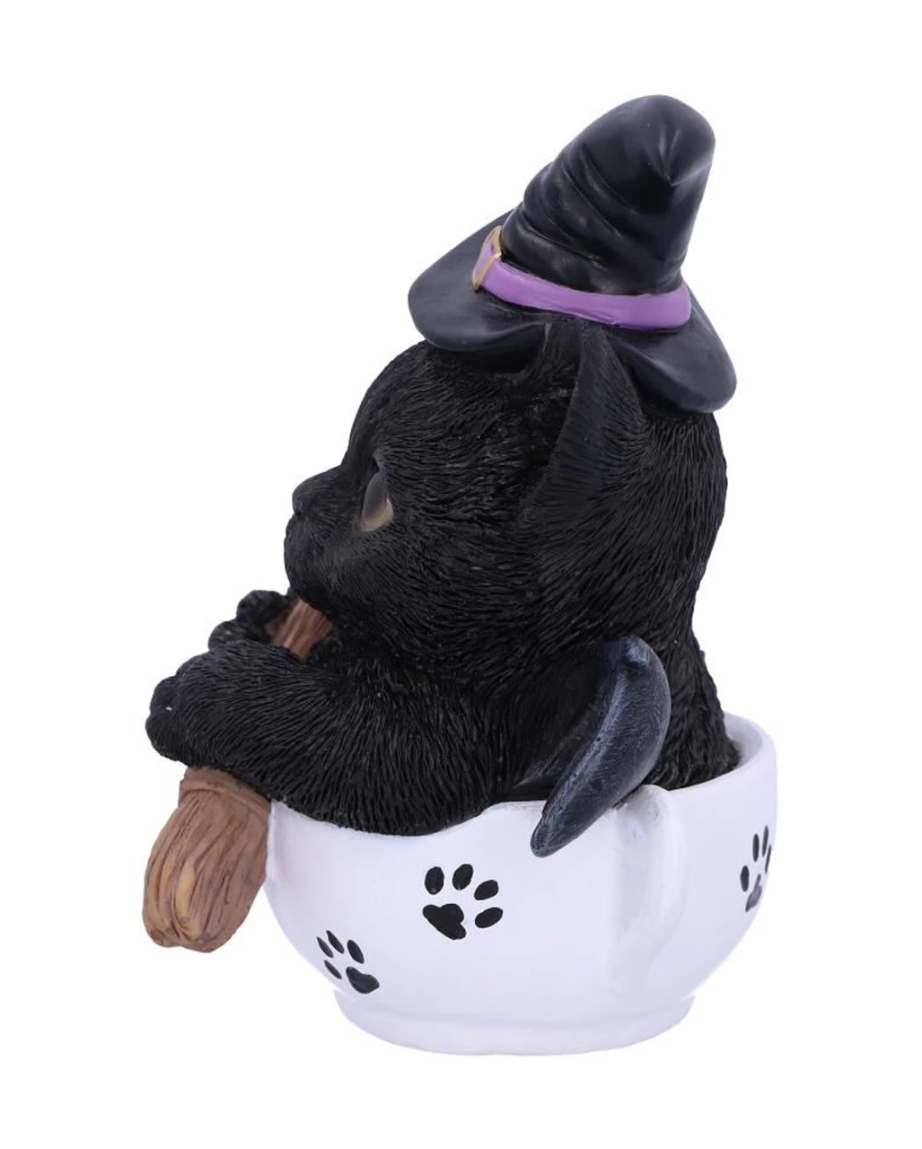 Schwarzes Hexen Kätzchen mit Hexenbesen in Teetasse