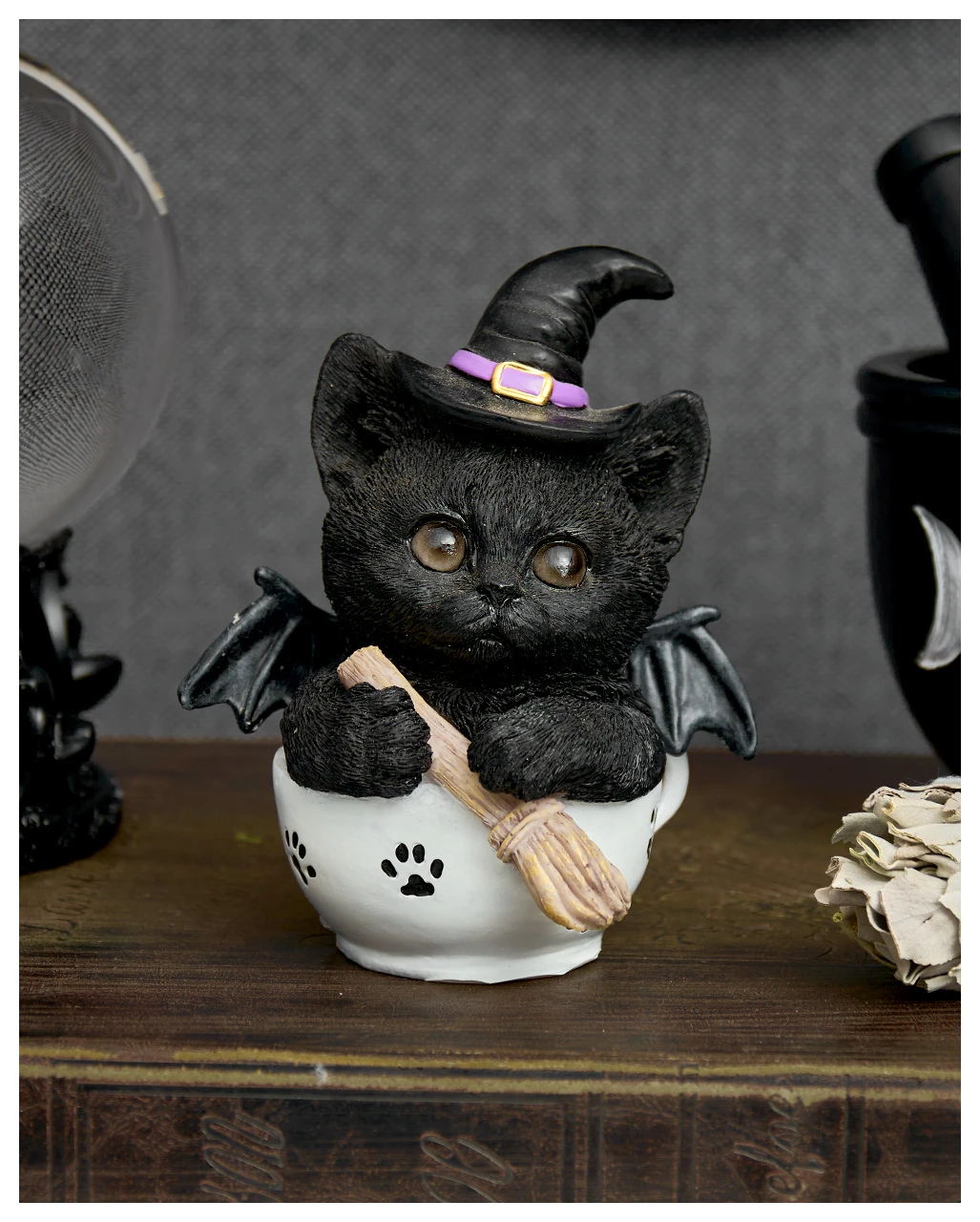 Lieferumfang: 1 x Schwarzes Hexen Kätzchen mit Hexenbesen in Teetasse